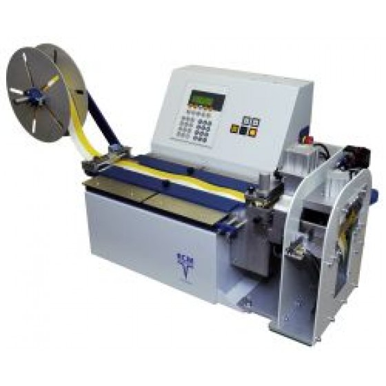 Unsere Maschine schneidet Bänder mit einer Breite bis 80 mm und andere Materialien ab Rolle (kein Metall).