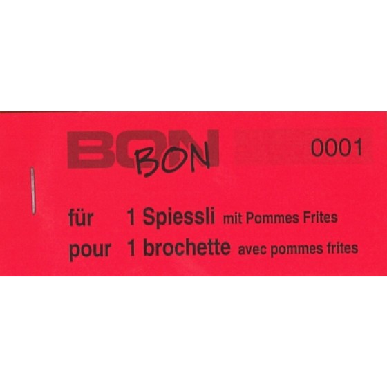 Block Verpflegungsbon "1 Spiessli mit Pommes Frites"