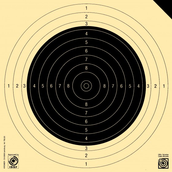 Gewehrscheibe 50 m, 10er SSV mit schwarzer Ecke (Probescheibe)