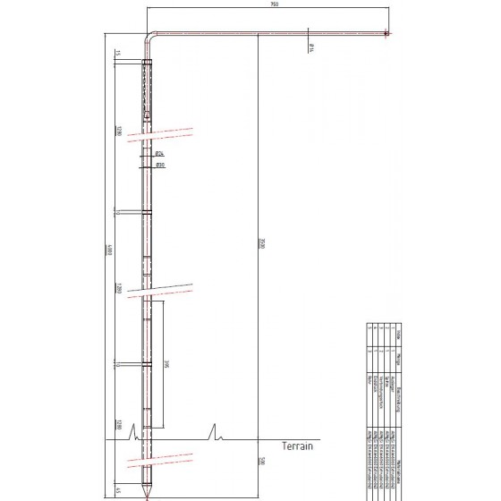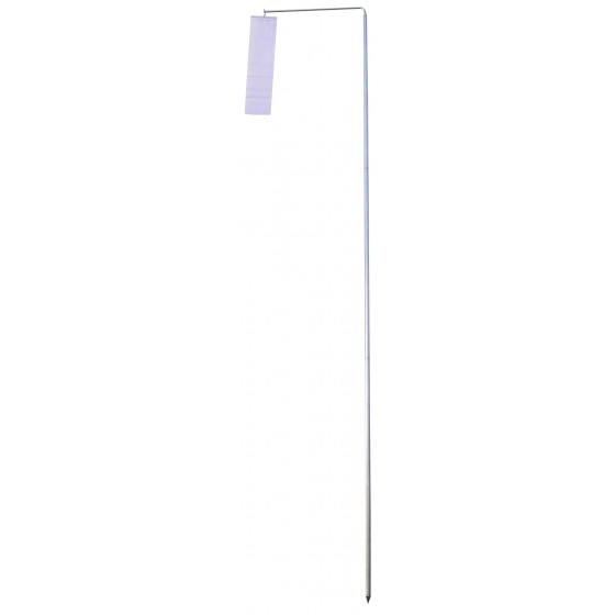 Alu ⌀ 30 mm, Länge 3'500 mm ab Boden = Länge Total 4'000 mm, mit Ausleger 750 mm für Fahne, unten mit Spitz, oben mit Bohrung
