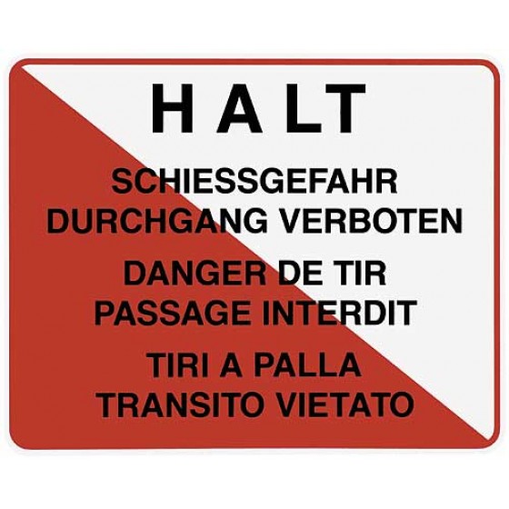 Warntafel "Halt Schiessgefahr", 3-sprachig
