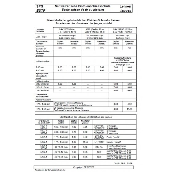 Schusslochlehre Kal. 38, ISSF